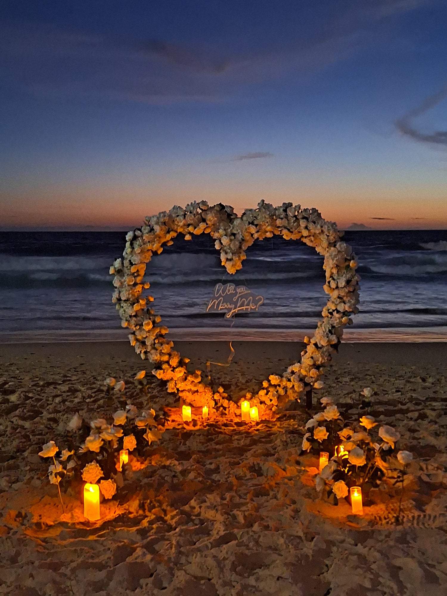 Beach Proposal limit 6 people. no alcohol and no trash. sunset duration around 5:30pm-7:00pm (ARTIFICIAL FLOWER x Fresh)